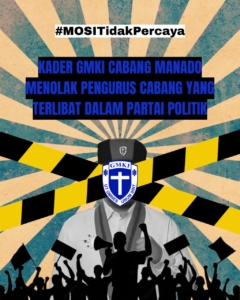 Manado, reputasiplus.com — Gerakan Mahasiswa Kristen Indonesia (GMKI) Komisariat Solafide Manado secara resmi menyatakan Mosi Tidak Percaya terhadap Ketua Cabang GMKI Manado, Prayer Paruntu, yang diduga terlibat dalam aktivitas politik praktis. Pernyataan sikap tersebut disampaikan sebagai bentuk keprihatinan kader terhadap arah kepemimpinan cabang yang dinilai tidak lagi sejalan dengan jati diri GMKI sebagai organisasi kader mahasiswa Kristen yang independen.
