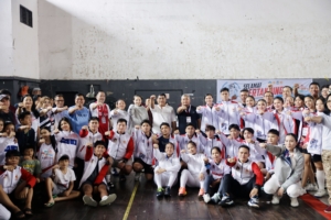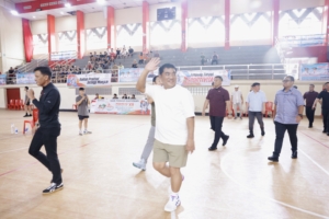 Setelah menyapa para atlet panahan dan memberikan apresiasi atas torehan prestasi mereka, Gubernur Yulius Selvanus melanjutkan peninjauan ke venue basket. Di lokasi ini, ia menyaksikan langsung pertandingan yang mempertemukan tim Talaud dan Minahasa Utara. Laga berjalan sengit dengan intensitas tinggi, diperkuat sorakan para suporter yang memadati tribun. Dalam suasana yang hangat dan penuh antusiasme, Gubernur sempat menunjukkan keterampilannya dengan melakukan tembakan ke ring basket dan berhasil mencetak dua poin, membuat para penonton memberikan tepuk tangan meriah.