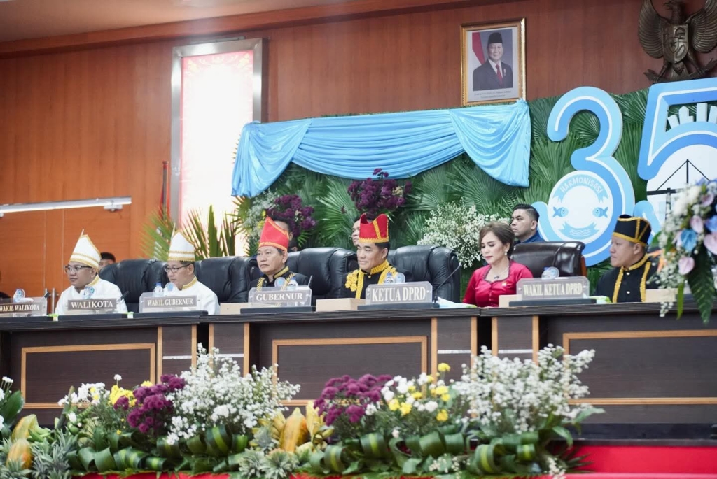 Gubernur Sulawesi Utara Yulius Selvanus Komaling (YSK) dan Wakil Gubernur Victor Mailangkay menghadiri Rapat Paripurna DPRD Kota Bitung dalam rangka HUT ke-35 Kota Bitung, Senin (13/10/2025). Kehadiran mereka disambut hangat oleh Wali Kota Hengky Honandar, Wakil Wali Kota Randito Maringka, Ketua DPRD beserta jajaran Forkopimda, anggota dewan, serta tokoh masyarakat dan adat.