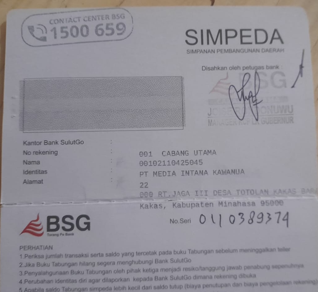 REKENING An: PT. MEDIA INTANA KAWANUA