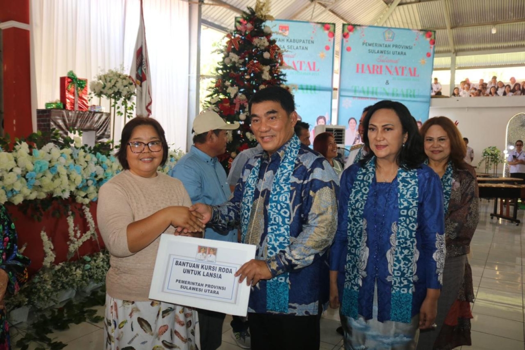 Pada rangkaian Safari Natal, Gubernur Sulawesi Utara juga menyerahkan sejumlah bantuan kepada pemerintah daerah dan masyarakat, antara lain buffer stock bencana, bantuan Tim Pembina Posyandu Provinsi Sulawesi Utara, alat bantu bagi panti disabilitas, mesin pemipil jagung, traktor roda empat, kursi roda bagi lansia, alat bantu jalan, bantuan bahan pokok, hibah rumah ibadah, bibit kelapa dan pala, alat pandai besi, serta santunan Jaminan Kematian BPJS Ketenagakerjaan kepada dua ahli waris.